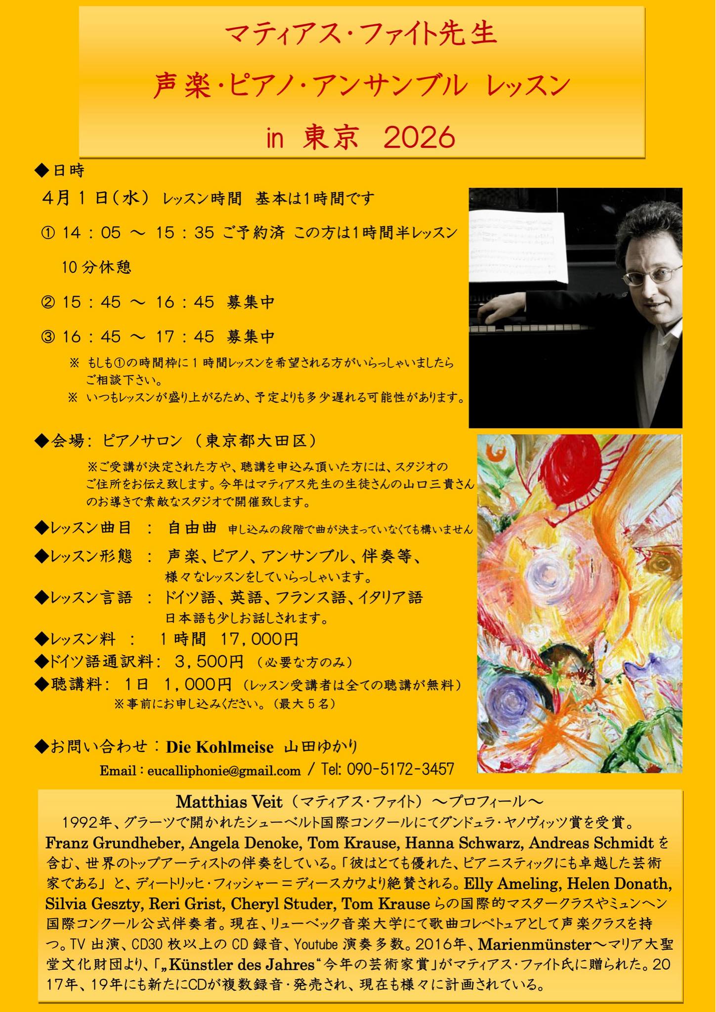 3月20日(祝金)~22日(日) 26日と28日追加しました。 レッスン詳細はこちら